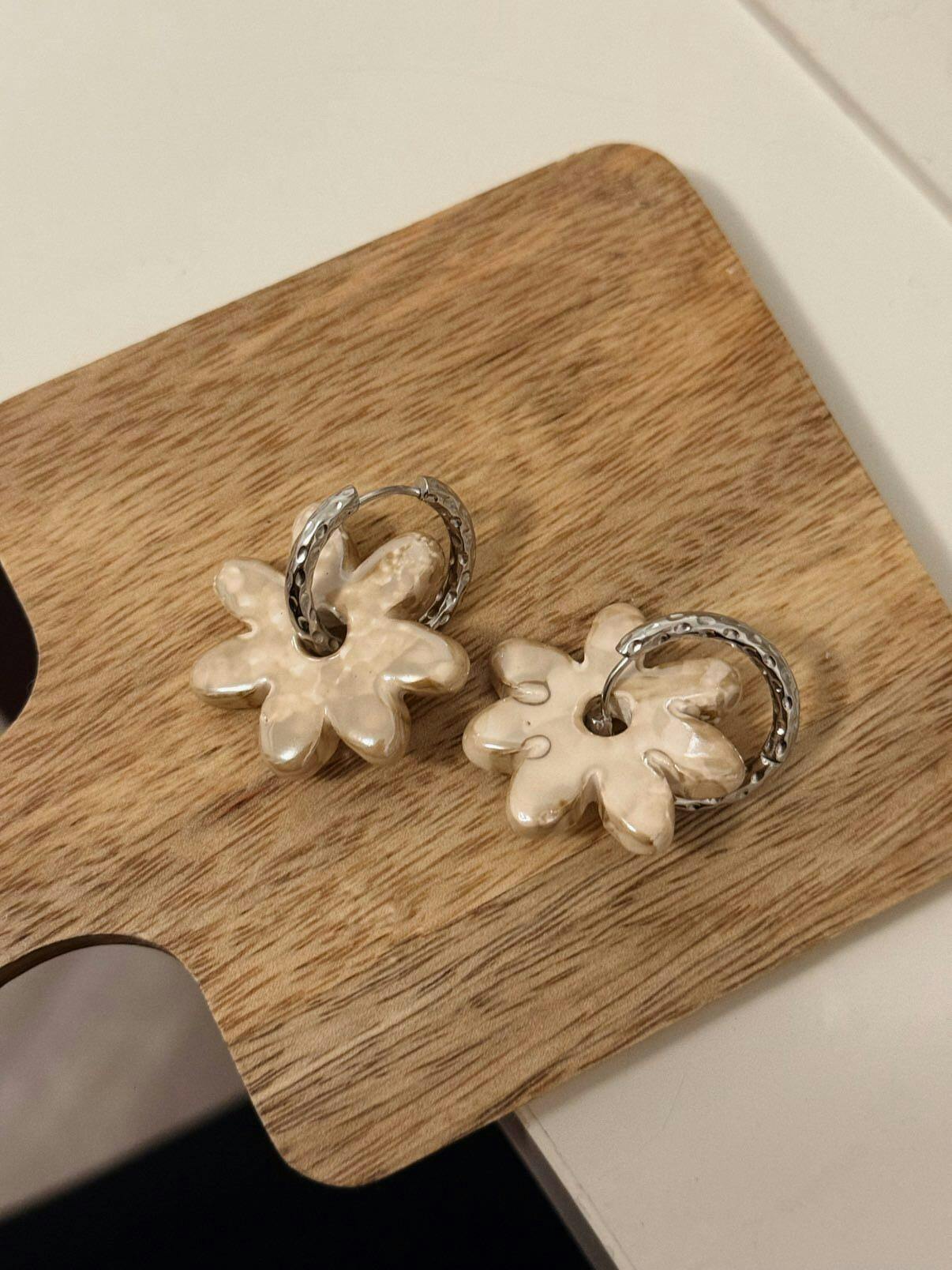 - Créole en acier inoxydable et fleur en ceramique