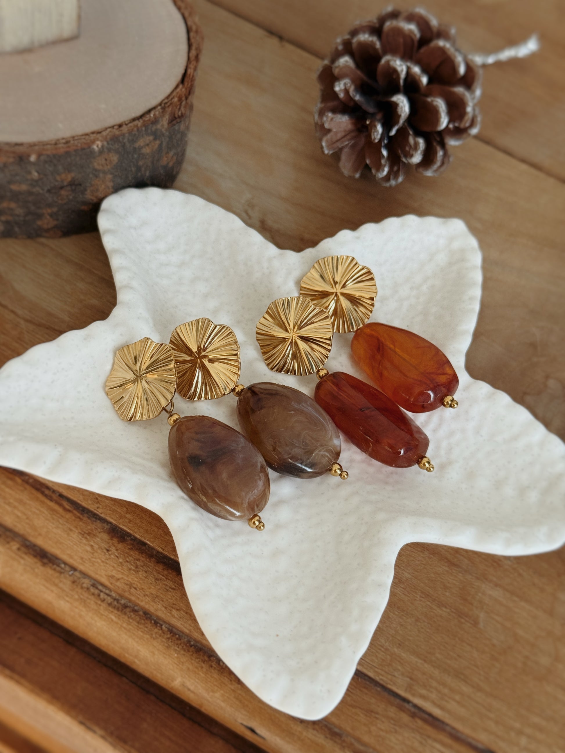 Déclinées dans des tons de saison : marron ou terracotta cuivré. Elles captent joliment la lumière tout en restant très confortables à porter.