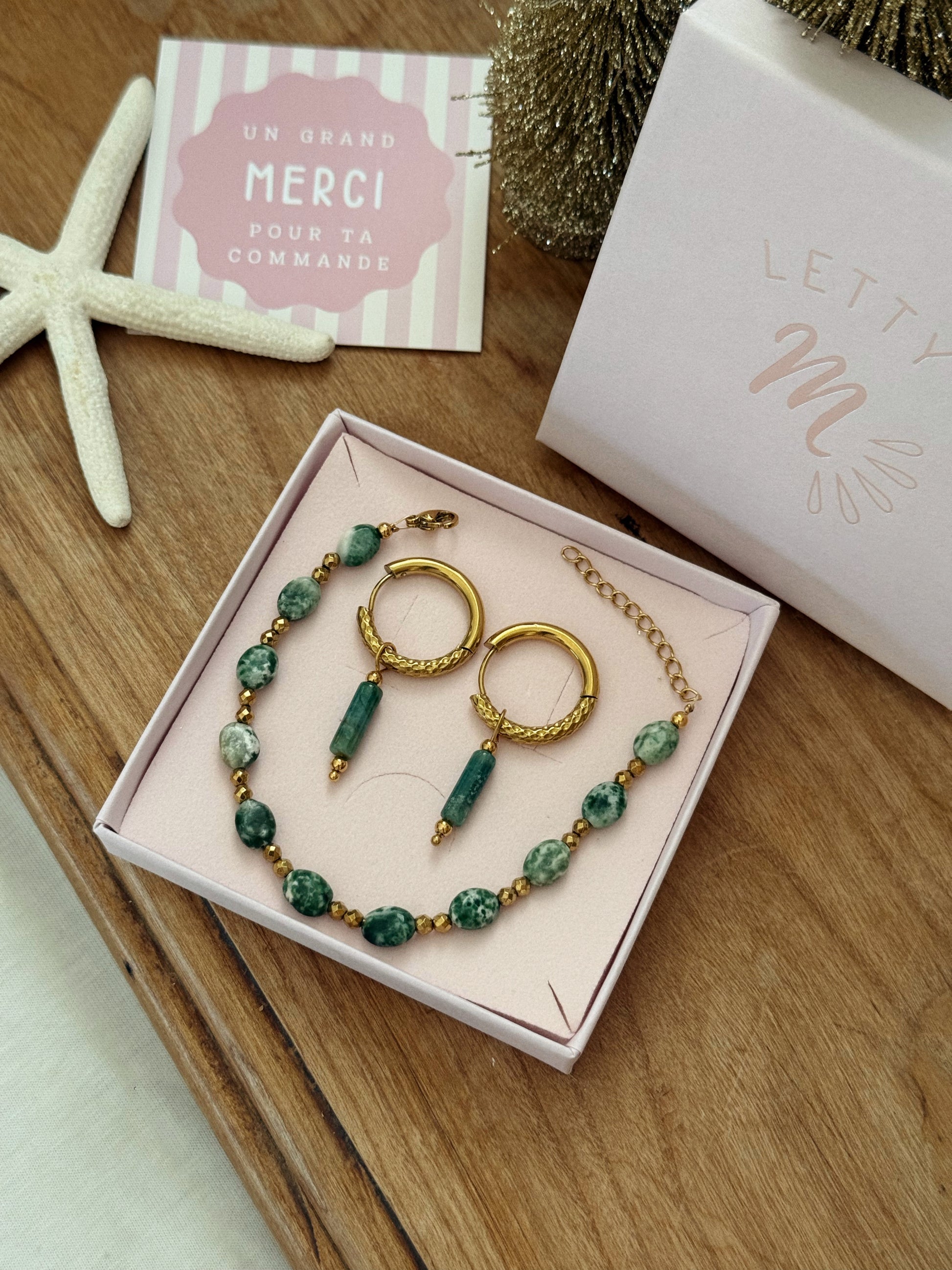 Boucles Treustel / Bracelet taille standard (Agate verte)